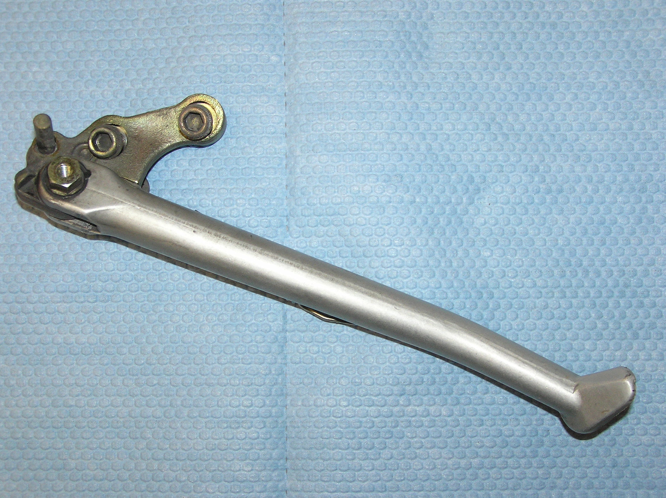 Kickstand from a 2001 996. Includes mounting bracket, spring, and mounting