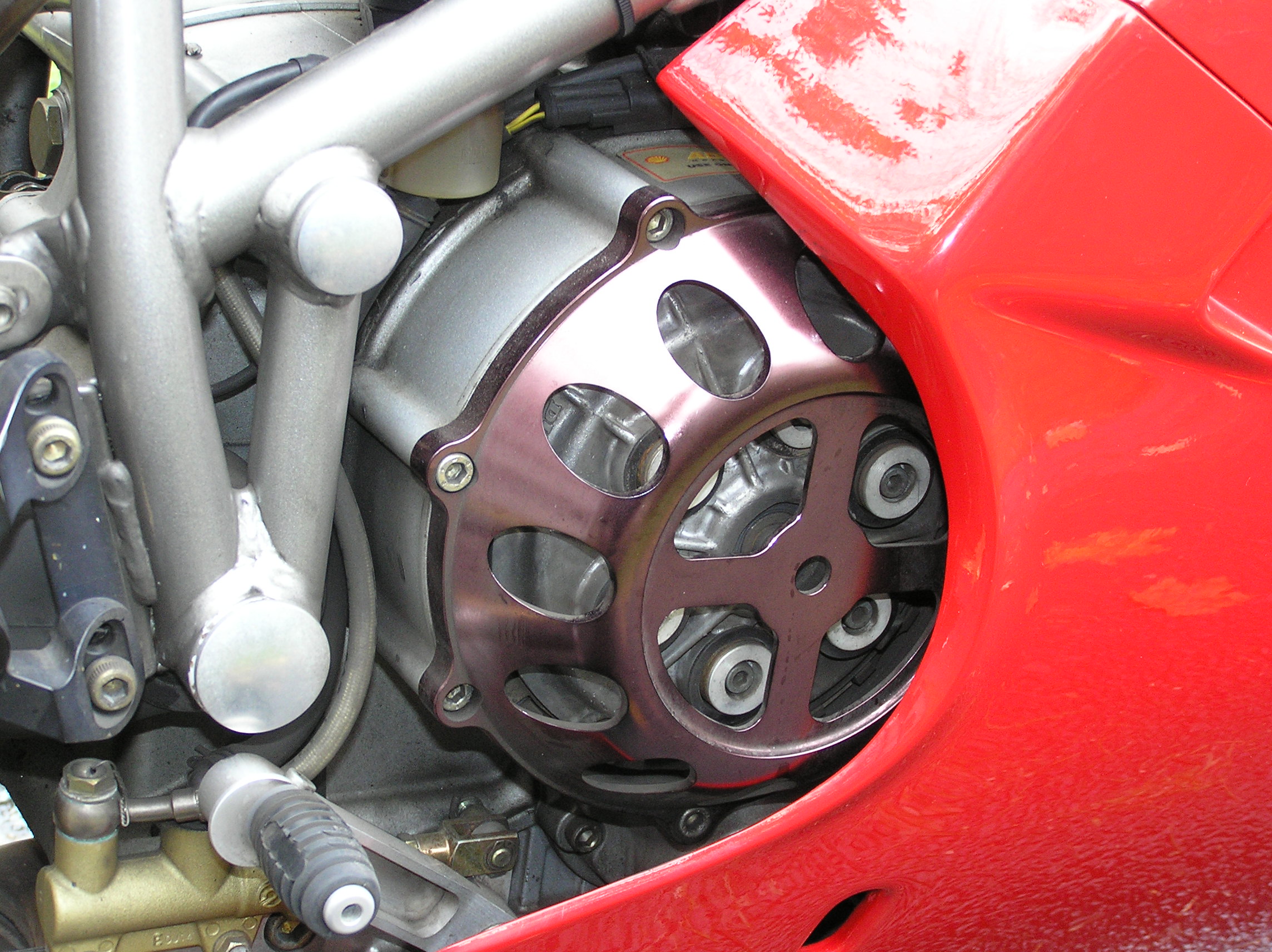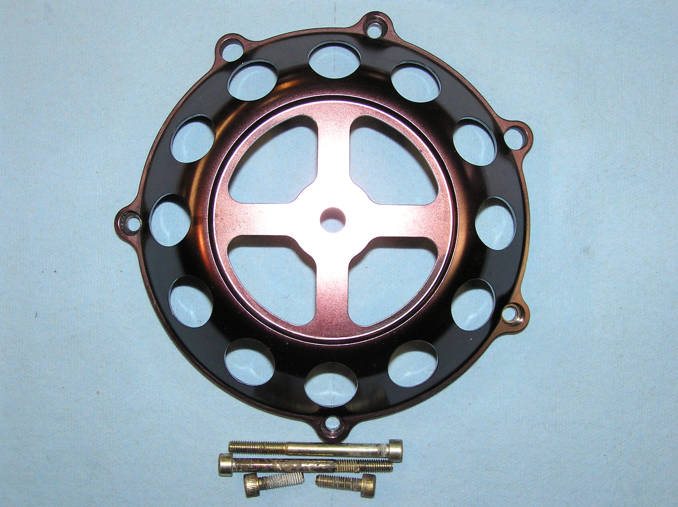 Billet clutch cover. Dark titanium color. Milled, full design.