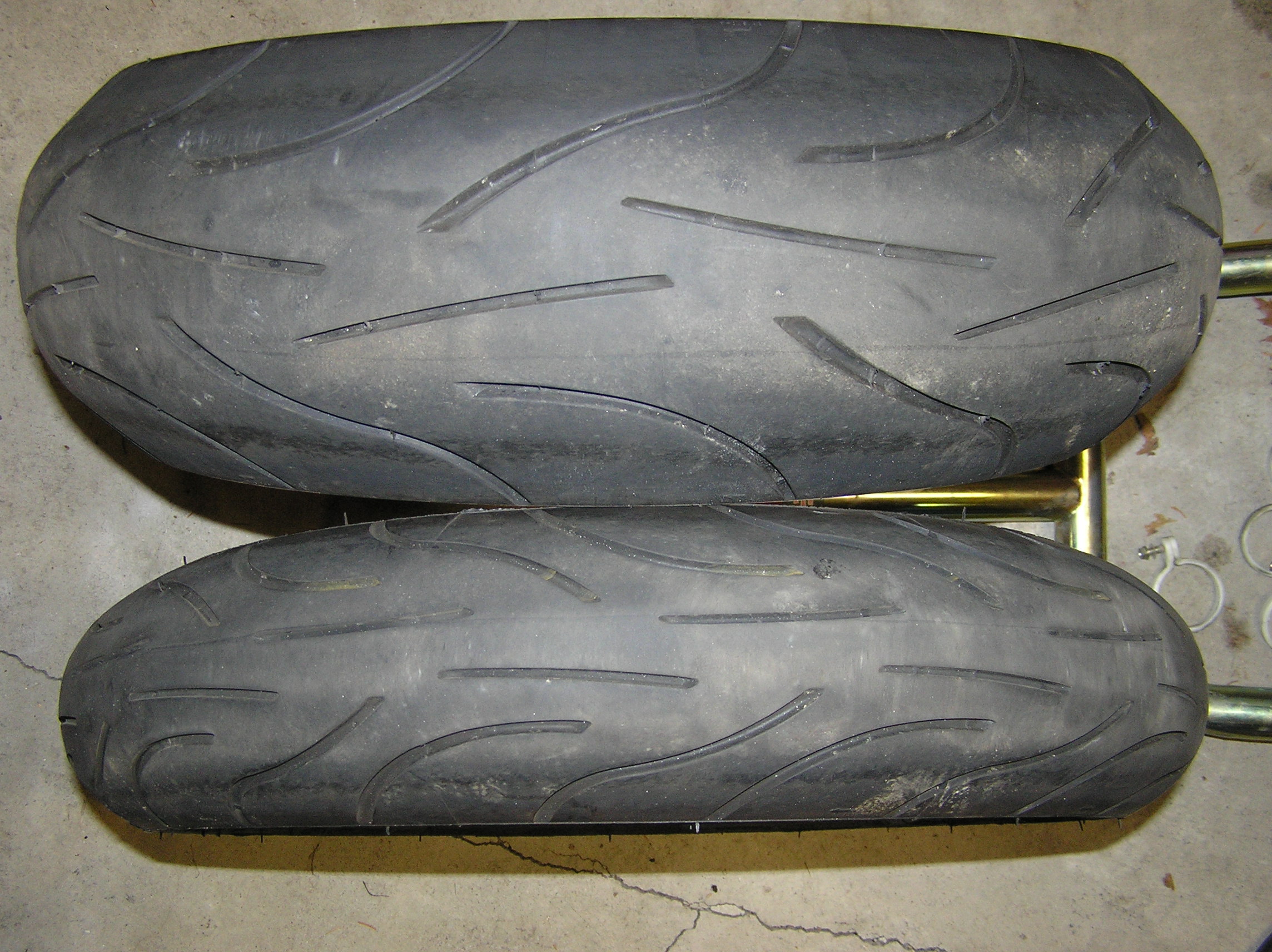 hundred miles street use. 180/55ZR17 rear, 120/70ZR17 front.