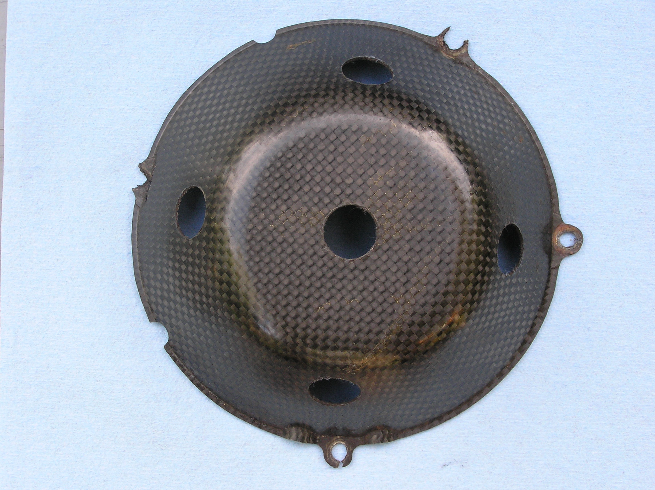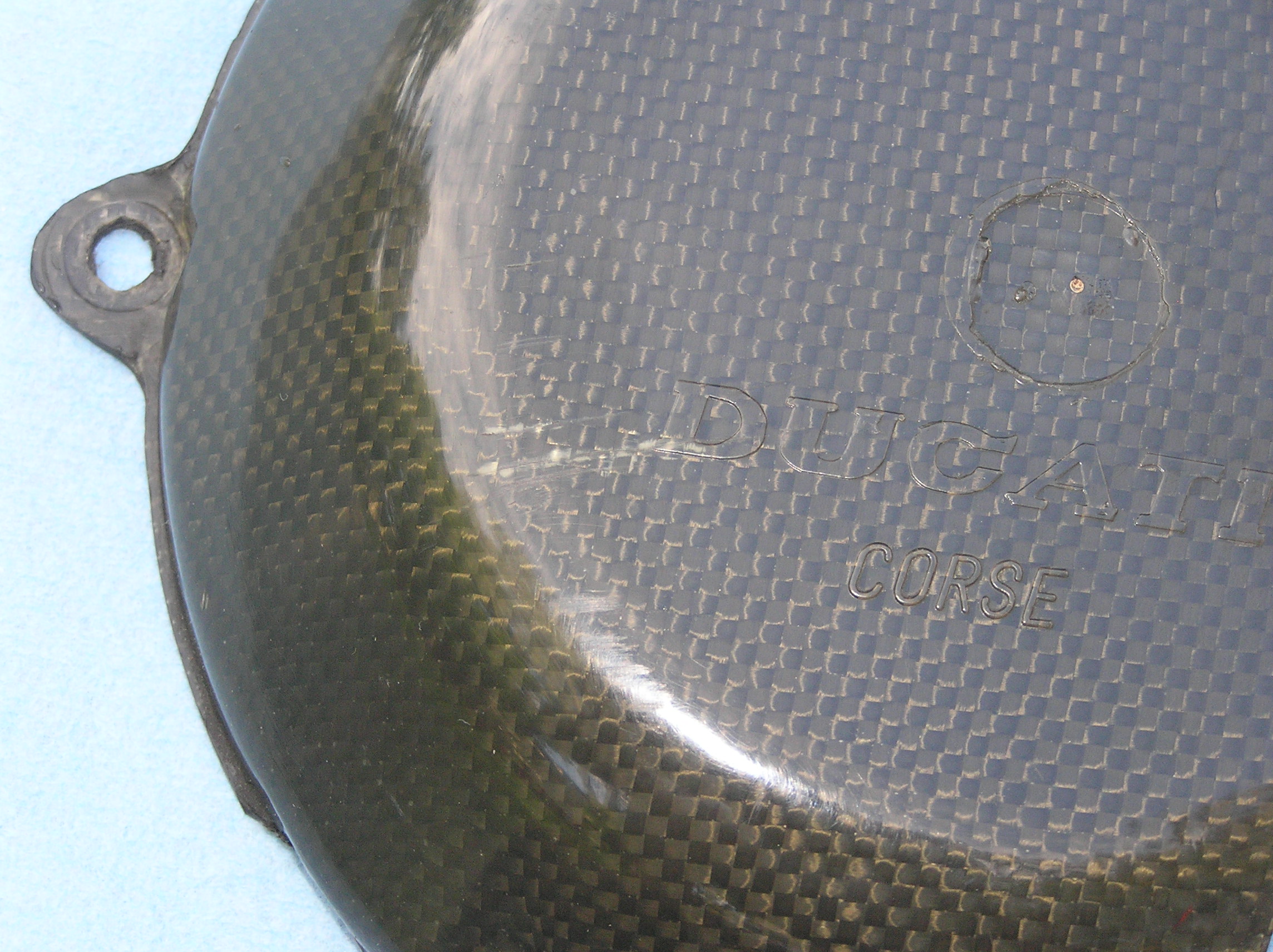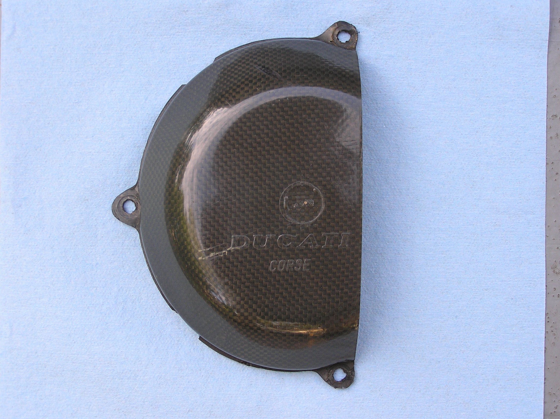 Carbon fiber clutch cover from a 2001 748. Nice gloss,