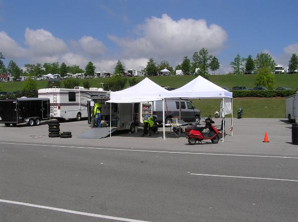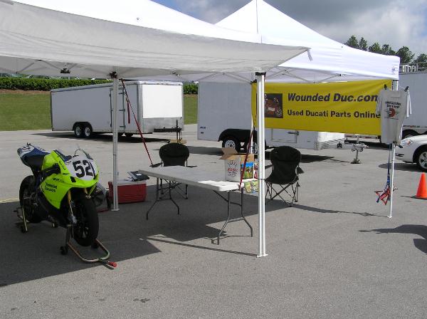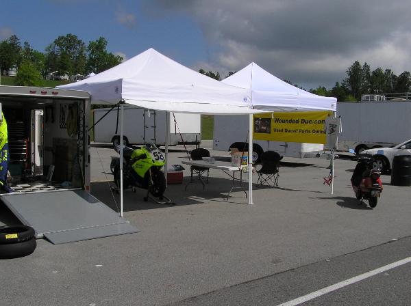 The Wounded Duc pits, nestled amongst the motorhomes and big rigs.