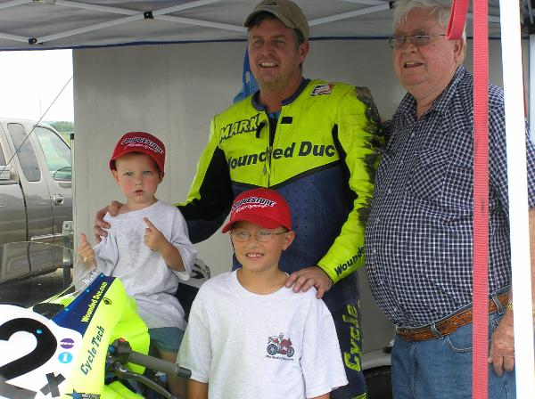 The obligatory pit photo, with my Dad and my newphews Collin and Adrian.
